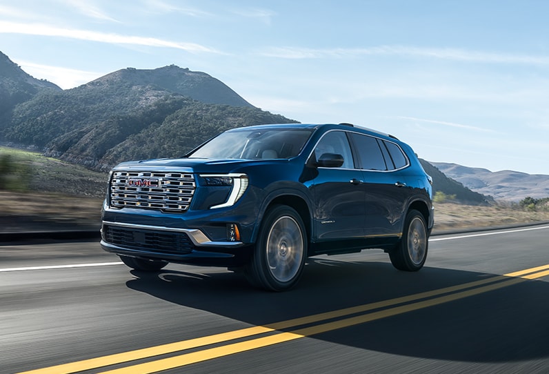 - GMC Acadia: Rugged and styled with a more aggressive look and wider stance, it looks ready to go off-road, especially with options like the AT4 trim.