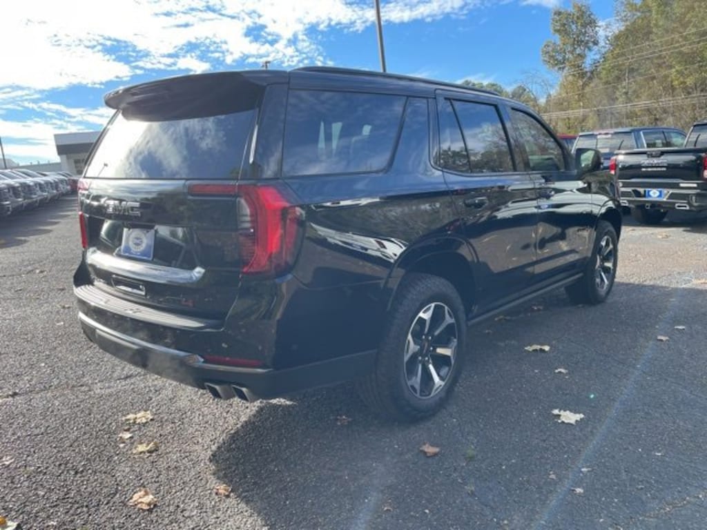 This 2026 GMC Yukon AT4 in Onyx Black comes with the following features: EcoTec3 5.3L V8 10-Speed Automatic with Overdrive 4WD Advanced Security Package (Glass Breakage Sensor, Theft-Deterrent Alarm System, Vehicle Inclination Sensor, and Vehicle Interior Movement Sensor), AT4 Black Appearance Package (Black Nameplates and Illuminated Front Black GMC Emblem), AT4 Premium Package (Dual-Pane Panoramic Power Sunroof and Power-Retractable Assist Steps), Floor Liner Package (1st and 2nd Rows All-Weather Floor Liners, 3rd Row All-Weather Floor Liners, and All-Weather Cargo Mat), License Plate Front Mounting Package, Preferred Equipment Group 4SB (4-Way Power Driver Lumbar Seat Adjuster, 4-Way Power Front Passenger Lumbar Seat Adjuster, AutoSense Hands-Free Power Liftgate, Black Roof-Mounted Luggage Rack Side Rails, Body-Color Door Handles, Bright Front and Rear Door Sill Plates, Dual Exhaust System, Front High-Approach Angle Fascia, Heavy-Duty Air Filter, Hill Descent Control, Magnetic Ride Control Suspension, Perforated Heather and Ventilated Driver and Front Passenger Seats, Power Tilt and Telescopic Steering Column, Red Horizontal-Mounted Recovery Hooks, and Wheels: 20 x 9 Machined and Painted), Technology Package (15 Diagonal Multi-Color Head-Up Display, Floor Console, Inside Rearview Auo-Dimming Rear Camera Mirror, and Power Release 2nd Row Bucket Seats), 10 Speakers, 3.23 Rear Axle Ratio, 3rd row seats: split-bench, 4-Wheel Disc Brakes, ABS brakes, Adaptive suspension, Air Conditioning, Alloy wheels, AM/FM radio: SiriusXM with 360L, Apple CarPlay/Android Auto, Audio memory, Auto High-beam Headlights, Auto-dimming door mirrors, Auto-dimming Rear-View mirror, Auto-leveling suspension, Automatic temperature control, Bose 10-Speaker Surround with CenterPoint, Brake assist, Bumpers: body-color, Compass, Delay-off headlights, Driver door bin, Driver vanity mirror, Dual front impact airbags, Dual front side impact airbags, Electronic Stability Control, Emergency communication system: OnStar and GMC connected services capable, Exterior Parking Camera Rear, Four wheel independent suspension, Front anti-roll bar, Front Bucket Seats, Front Center Armrest, Front dual zone A/C, Front fog lights, Front reading lights, Fully automatic headlights, Garage door transmitter, Heated door mirrors, Heated Driver and Front Passenger Seats, Heated front seats, Heated rear seats, Heated steering wheel, Illuminated entry, Low tire pressure warning, Memory seat, Navigation system: GMC Connected Navigation, Occupant sensing airbag, Outside temperature display, Overhead airbag, Overhead console, Panic alarm, Passenger door bin, Passenger vanity mirror, Perforated Leather Seating Surfaces, Power door mirrors, Power driver seat, Power Liftgate, Power passenger seat, Power steering, Power windows, Radio: 16.8 Diagonal Premium GMC Infotainment System, Rain sensing wipers, Rear air conditioning, Rear anti-roll bar, Rear reading lights, Rear seat center armrest, Rear window defroster, Rear window wiper, Remote keyless entry, Security system, SiriusXM with 360L, Speed control, Speed-sensing steering, Split folding rear seat, Spoiler, Steering wheel memory, Steering wheel mounted audio controls, Tachometer, Telescoping steering wheel, Tilt steering wheel, Traction control, Trip computer, Turn signal indicator mirrors, Variably intermittent wipers, Ventilated front seats, and Voltmeter.
