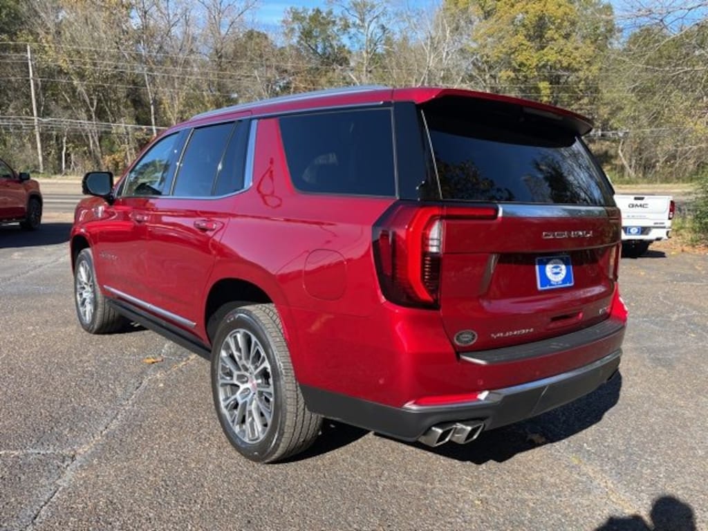 This 2026 GMC Yukon Denali in Volcanic Red Tintcoat comes with the following features: EcoTec3 6.2L V8 10-Speed Automatic with Overdrive 4WD Sun and Power Step Package (Dual-Pane Panoramic Power Sunroof and Power-Retractable Assist Steps), 10 Speakers, 15 Diagonal Multi-Color Head-Up Display, 3 Years OnStar One, 3.23 Rear Axle Ratio, 3rd row seats: split-bench, 4-Way Power Driver Lumbar Seat Adjuster, 4-Way Power Front Passenger Lumbar Seat Adjuster, 4-Wheel Disc Brakes, ABS brakes, Adaptive suspension, Air Conditioning, Alloy wheels, AM/FM radio: SiriusXM with 360L, Apple CarPlay/Android Auto, Audio memory, Auto High-beam Headlights, Auto-dimming door mirrors, Auto-dimming Rear-View mirror, Auto-leveling suspension, Automatic temperature control, AutoSense Hands-Free Power Liftgate, Bodyside moldings, Bose 10-Speaker Surround with CenterPoint, Brake assist, Bright Front and Rear Door Sill Plates, Bumpers: body-color, Compass, Delay-off headlights, Driver door bin, Driver vanity mirror, Dual Exhaust System, Dual front impact airbags, Dual front side impact airbags, Electronic Stability Control, Emergency communication system: OnStar and GMC connected services capable, Exterior Parking Camera Rear, Four wheel independent suspension, Front anti-roll bar, Front Bucket Seats, Front Center Armrest, Front dual zone A/C, Front fog lights, Front reading lights, Fully automatic headlights, Galvano Bodyside Moldings, Garage door transmitter, Heads-Up Display, Heated door mirrors, Heated Driver and Front Passenger Seats, Heated front seats, Heated rear seats, Heated steering wheel, Illuminated entry, Low tire pressure warning, Magnetic Ride Control Suspension, Memory seat, Navigation system: GMC Connected Navigation, Occupant sensing airbag, Outside temperature display, Overhead airbag, Overhead console, Panic alarm, Passenger door bin, Passenger vanity mirror, Perforated Heather and Ventilated Driver and Front Passenger Seats, Perforated Leather Seating Surfaces, Power door mirrors, Power driver seat, Power Liftgate, Power passenger seat, Power Release 2nd Row Bucket Seats, Power steering, Power Tilt and Telescopic Steering Column, Power windows, Radio: 16.8 Diagonal Premium GMC Infotainment System, Rain sensing wipers, Rear air conditioning, Rear anti-roll bar, Rear reading lights, Rear window defroster, Rear window wiper, Remote keyless entry, Security system, SiriusXM with 360L, Speed control, Speed-sensing steering, Split folding rear seat, Spoiler, Steering wheel memory, Steering wheel mounted audio controls, Tachometer, Telescoping steering wheel, Tilt steering wheel, Traction control, Trip computer, Turn signal indicator mirrors, Variably intermittent wipers, Ventilated front seats, Voltmeter, Wheel Locks (set of 4), Wheels: 20 x 9 6-Spoke Polished Aluminum, and Wheels: 22 x 9 Ultra-Bright Machined.