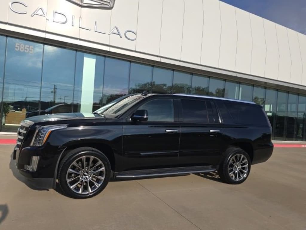 This 2019 Cadillac Escalade ESV Luxury in Black Raven comes with the following features: 6.2L V8 10-Speed Automatic with Overdrive RWD All-Weather Floor Liner Package (LPO), Driver Awareness Package (Forward Collision Alert, IntelliBeam Automatic High Beam On/Off, Lane Change Alert w/Side Blind Zone Alert, Lane Keep Assist w/Lane Departure Warning, Low Speed Forward Automatic Braking, Rear Cross Traffic Alert, and Safety Alert Seat), Escalade Sport Edition (Gloss Black Front Grille and Wheels: 22 12-Spoke Alloy), Preferred Equipment Group 1SB (Power Configurable Second Row Bucket Seats, Power Tilt-Sliding Sunroof w/Express-Open/Close, Rear Camera Mirror, Rear Camera Mirror Washer, and Reconfigurable 4-Color Head-Up Display), Theft-Deterrent Package (Inclination Sensor, Theft-Deterrent Alarm System, and Vehicle Interior Movement Sensor), 12-Way Power Front Passenger Seat Adjuster, 16 Speakers, 2-Presets Memory For Driver Seat Adjuster, 3.23 Axle Ratio, 3rd row seats: split-bench, 4-Wheel Disc Brakes, ABS brakes, Adaptive suspension, Adjustable pedals, Air Conditioning, All-Weather Cargo Mat (LPO), Alloy wheels, AM/FM radio: SiriusXM, Apple CarPlay/Android Auto, Auto High-beam Headlights, Auto tilt-away steering wheel, Auto-dimming door mirrors, Auto-leveling suspension, Automatic temperature control, Black Front License Plate Bracket, Bodyside moldings, Bose Centerpoint 16 Speaker Surround Sound System, Brake assist, Bumpers: body-color, CD player, Compass, Delay-off headlights, Driver door bin, Driver vanity mirror, Dual front impact airbags, Dual front side impact airbags, DVD-Audio, Electronic Stability Control, Emergency communication system: OnStar Protection, Exterior Parking Camera Rear, Front anti-roll bar, Front Bucket Seats, Front Center Armrest w/Storage, Front dual zone A/C, Front reading lights, Front wheel independent suspension, Fully automatic headlights, Garage door transmitter, HD Radio, Heads-Up Display, Heated & Cooled Driver & Front Passenger Seats, Heated door mirrors, Heated front seats, Heated rear seats, Heated steering wheel, Illuminated entry, Leather Seating Surfaces, Leather Shift Knob, Leather steering wheel, Low tire pressure warning, Magnetic Ride Control Suspension, Memory seat, Navigation System, Occupant sensing airbag, Outside temperature display, Overhead airbag, Overhead console, Panic alarm, Passenger door bin, Passenger vanity mirror, Pedal memory, Power door mirrors, Power driver seat, Power Liftgate, Power moonroof, Power passenger seat, Power steering, Power windows, Radio data system, Radio: AM/FM Cadillac User Experience w/Nav, Rain sensing wipers, Rear air conditioning, Rear anti-roll bar, Rear audio controls, Rear reading lights, Rear window defroster, Rear window wiper, Remote keyless entry, Roof rack: rails only, Security system, Single Slot CD/MP3 Player, SiriusXM NavTraffic, SiriusXM Radio, Speed control, Split folding rear seat, Spoiler, Steering wheel memory, Steering wheel mounted audio controls, Tachometer, Telescoping steering wheel, Tilt steering wheel, Traction control, Trip computer, Turn signal indicator mirrors, Variably intermittent wipers, Ventilated front seats, and Wheels: 22 x 9 7-Spoke Alloy w/Chrome Inserts.