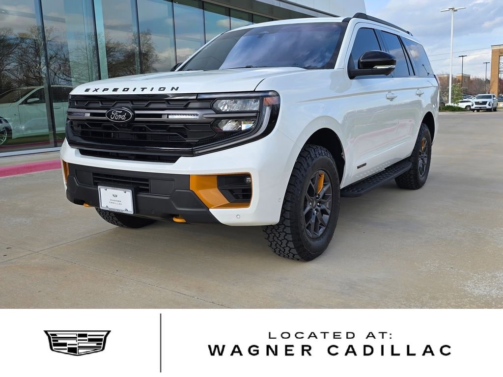 Recent Arrival! This 2025 Ford Expedition Tremor in White Metallic comes with the following features: 3.5L V6 10-Speed Automatic 4WD 4WD Equipment Group 501A High Package (2nd Row Power-Folding Captain's Chairs), 4WD, 10 Speakers, 3.73 Axle Ratio, 3rd row seats: split-bench, 4-Wheel Disc Brakes, ABS brakes, Adjustable pedals, Air Conditioning, Alloy wheels, AM/FM radio: SiriusXM with 360L, Apple CarPlay/Android Auto, Auto High-beam Headlights, Auto-dimming door mirrors, Auto-dimming Rear-View mirror, Automatic temperature control, Brake assist, Bumpers: body-color, Compass, Delay-off headlights, Driver door bin, Driver vanity mirror, Dual front impact airbags, Dual front side impact airbags, Electronic Stability Control, Emergency communication system: 911 Assist, Exterior Parking Camera Rear, Four wheel independent suspension, Front anti-roll bar, Front Bucket Seats, Front Center Armrest, Front dual zone A/C, Front fog lights, Front License Plate Bracket, Front reading lights, Fully automatic headlights, Garage door transmitter, Heated & Ventilated Leather Front Captain's Chairs, Heated door mirrors, Heated front seats, Heated steering wheel, Illuminated entry, Leather steering wheel, Low tire pressure warning, Memory seat, Navigation System, Occupant sensing airbag, Outside temperature display, Overhead airbag, Overhead console, Panic alarm, Passenger door bin, Passenger vanity mirror, Pedal memory, Power door mirrors, Power driver seat, Power moonroof: Vista Roof, Power passenger seat, Power steering, Power windows, Radio data system, Radio: B&O Sound System by Bang & Olufsen, Rear air conditioning, Rear anti-roll bar, Rear reading lights, Rear window defroster, Rear window wiper, Reclining 3rd row seat, Remote keyless entry, Security system, SiriusXM w/360L, Speed control, Speed-sensing steering, Speed-Sensitive Wipers, Split folding rear seat, Spoiler, Steering wheel memory, Steering wheel mounted audio controls, Tachometer, Telescoping steering wheel, Tilt steering wheel, Traction control, Trip computer, Turn signal indicator mirrors, Variably intermittent wipers, Ventilated front seats, Voltmeter, and Wheels: 18 Dark Carbonized Gray Painted Aluminum.Odometer is 1393 miles below market average!