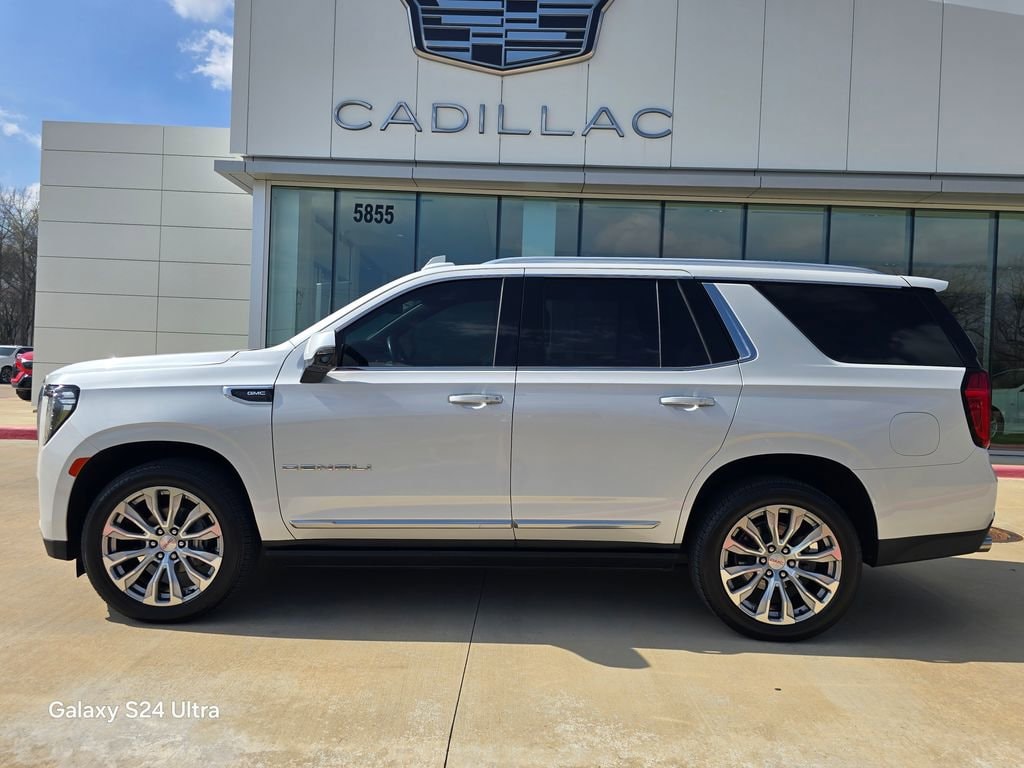 This 2022 GMC Yukon Denali in White Frost Tricoat comes with the following features: EcoTec3 6.2L V8 10-Speed Automatic with Overdrive 4WD 4WD License Plate Front Mounting Package, Preferred Equipment Group 5SA (15 Diagonal Multi-Color Head-Up Display, 2 Presets For Outside Rearview Mirrors, 3 Years of GMC Connected Services, 3rd Row 60/40 Power-Folding Split-Bench Seat, Automatic Stop/Start, Bright Front & Rear Door Sill Plates, Chrome Door Handles w/Body-Color Strip, Dual Exhaust System, Floor Console, Galvano Bodyside Moldings, Hands-Free Power Programmable Rear Liftgate, HD Surround Vision, Heated & Ventilated Driver & Front Passenger Seats, Heated 2nd Row Outboard Position Seats, Heated Driver & Front Passenger Seats, Heated Steering Wheel, Hill Descent Control, Inside Rear-View Auto-Dimming Mirror, Outside Heated Power-Adjustable Mirrors, Power Release 2nd Row Bucket Seats, Power Tilt & Telescopic Steering Column, Rear Pedestrian Alert, Safety Alert Seat, Start/Stop System Disable Button, Universal Home Remote, and Wireless Charging), 4WD, 14 Speakers, 3.23 Rear Axle Ratio, 3rd row seats: split-bench, 4-Wheel Disc Brakes, ABS brakes, Adaptive suspension, Air Conditioning, Alloy wheels, AM/FM radio: SiriusXM with 360L, AM/FM Stereo, Apple CarPlay/Android Auto, Auto High-beam Headlights, Auto-dimming door mirrors, Auto-dimming Rear-View mirror, Auto-leveling suspension, Automatic Emergency Braking, Automatic temperature control, Bodyside moldings, Bose 14-Speaker Surround w/CenterPoint, Brake assist, Bumpers: body-color, Compass, Delay-off headlights, Driver door bin, Driver vanity mirror, Dual front impact airbags, Dual front side impact airbags, Dual-Pane Panoramic Power Sunroof, Electronic Stability Control, Emergency communication system: OnStar and GMC Connected Services capable, Following Distance Indicator, Forward Collision Alert, Four wheel independent suspension, Front & Rear Park Assist, Front anti-roll bar, Front Bucket Seats, Front Center Armrest, Front dual zone A/C, Front fog lights, Front Pedestrian Braking, Front reading lights, Fully automatic headlights, Garage door transmitter, Heads-Up Display, Heated door mirrors, Heated front seats, Heated rear seats, Heated steering wheel, Illuminated entry, IntelliBeam Automatic High Beam On/Off, Jet Black Interior Trim, Lane Change Alert w/Side Blind Zone Alert, Lane Keep Assist w/Lane Departure Warning, Leather steering wheel, Low tire pressure warning, Magnetic Ride Control Suspension, Memory seat, Navigation System, Not Equipped w/4-Way Driver & Fr Pass Pwr Lumbar, Not Equipped w/Steering Column Lock, Occupant sensing airbag, Outside temperature display, Overhead airbag, Overhead console, Panic alarm, Passenger door bin, Passenger vanity mirror, Perforated Leather Seating Surfaces, Power door mirrors, Power driver seat, Power Liftgate, Power passenger seat, Power steering, Power windows, Power-Retractable Assist Steps, Rain sensing wipers, Rear air conditioning, Rear anti-roll bar, Rear Cross Traffic Alert, Rear reading lights, Rear window defroster, Rear window wiper, Remote keyless entry, Roof rack: rails only, Security system, SiriusXM w/360L, Speed control, Speed-sensing steering, Split folding rear seat, Spoiler, Steering wheel memory, Steering wheel mounted audio controls, Tachometer, Telescoping steering wheel, Tilt steering wheel, Traction control, Trip computer, Turn signal indicator mirrors, Variably intermittent wipers, Ventilated front seats, Voltmeter, Wheel Locks (Set of 4) (LPO), Wheels: 20 x 9 6-Spoke Polished Aluminum, and Wheels: 22 x 9 Bright Machined Aluminum.