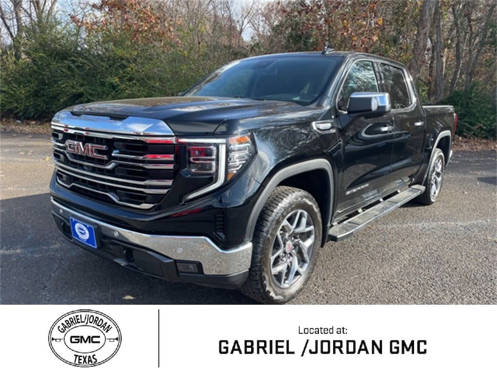 This 2023 GMC Sierra 1500 SLT in Onyx Black comes with the following features: EcoTec3 5.3L V8 10-Speed Automatic 4WD High Capacity Suspension Package, Preferred Equipment Group 4SA (120-Volt Bed Mounted Power Outlet, 120-Volt Instrument Panel Power Outlet, 170 Amp Alternator, 2 Charge/Data USB Ports, 2 Type-C Charge-Only Rear USB Ports, 6-Speaker Audio System Feature, Auto-Locking Rear Differential, Auxiliary External Transmission Oil Cooler, Chrome Header & Chrome Grille Insert Bars, Color-Keyed Carpeting Floor Covering, Compass, Deep-Tinted Glass, Electric Rear-Window Defogger, Electrical Steering Column Lock, Front Frame-Mounted Black Recovery Hooks, Front Rainsensing Wipers, GMC Connected Access Capable, HD Rear Vision Camera, Keyless Open & Start, LED Cargo Area Lighting, Manual Tilt-Wheel & Telescoping Steering Column, OnStar & GMC Connected Services Capable, Perimeter Lighting, Power Door Locks, Power Front Passenger Windows w/Express Up/Down, Power Front Windows w/Driver Express Up/Down, Power Rear Windows w/Express Down, Push Button Start, Rear Wheelhouse Liners, Remote Vehicle Starter System, SiriusXM w/360L, Steering Wheel Audio Controls, Theft Deterrent System (Unauthorized Entry), Wi-Fi Hotspot Capable, and Wireless Phone Projection), ProGrade Trailering System (Hitch Guidance w/Hitch View, In-Vehicle Trailering App, and Integrated Trailer Brake Controller), Sierra Safety Plus Package (HD Surround Vision, Rear Cross Traffic Braking, Rear Pedestrian Detection, Safety Alert Seat, Trailer Camera Provisions, Trailer Side Blind Zone Alert, and Ultrasonic Front & Rear Park Assist), SLT Convenience Package (2 Charge/Data USB Ports Inside Center Console, Electronic Precision Shift, Floor-Mounted Center Console, Front Bucket Seats, Power Rake & Telescoping Steering Column, Premium Bose 7-Speaker Sound System, Ventilated Driver & Front Passenger Seats, and Wireless Charging), SLT Preferred Package (Adaptive Cruise Control, Heated 2nd Row Outboard Seats, Power Sliding Rear Window w/Rear Defogger, and Universal Home Remote), Standard Suspension Package, Texas Edition SLT Premium Plus Package (20 Polished Aluminum Wheels, Chrome Wheel To Wheel Assist Steps, Spray-On Pickup Bed Liner w/GMC Logo, and Texas Edition Badging), Trailering Package (Hitch Guidance), X31 Off-Road & Protection Package (All-Weather Floor Liner (LPO)), X31 Off-Road Package (Dual Exhaust System, Heavy-Duty Air Filter, Hill Descent Control, Off-Road Suspension, and X31 Hard Badge), 10-Way Power Driver Seat Adjuster w/Lumbar, 10-Way Power Passenger Seat Adjuster w/Lumbar, 3.23 Rear Axle Ratio, 4-Wheel Disc Brakes, 6 Speakers, ABS brakes, Air Conditioning, Alloy wheels, AM/FM radio, Apple CarPlay/Android Auto, Auto High-beam Headlights, Auto-dimming door mirrors, Auto-dimming Rear-View mirror, Automatic Emergency Braking, Automatic temperature control, Brake assist, Buckle to Drive, Bumpers: chrome, Delay-off headlights, Driver door bin, Driver Memory, Driver vanity mirror, Dual front impact airbags, Dual front side impact airbags, Electronic Stability Control, Emergency communication system: OnStar and GMC connected services capable, Following Distance Indicator, Forward Collision Alert, Front 40/20/40 Split-Bench Seat, Front anti-roll bar, Front Center Armrest w/Storage, Front dual zone A/C, Front fog lights, Front License Plate Kit, Front Pedestrian Braking, Front reading lights, Front wheel independent suspension, Fully automatic headlights, Heated door mirrors, Heated Driver & Front Outboard Passenger Seating, Heated front seats, Heated steering wheel, Illuminated entry, IntelliBeam Automatic High Beam On/Off, Lane Keep Assist w/Lane Departure Warning, Low tire pressure warning, Memory seat, Navigation System, Not Equipped w/Steering Column Lock, Occupant sensing airbag, Outside temperature display, Overhead airbag, Overhead console, Panic alarm, Passenger door bin, Passenger vanity mirror, Perf Leather-