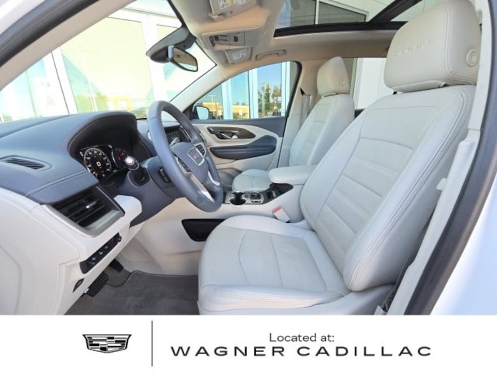 Recent Arrival! This 2023 GMC Terrain Denali in White Frost Tricoat comes with the following features: 1.5L DOHC 9-Speed Automatic AWD AWD License Plate Front Mounting Package, Preferred Equipment Group 5SA, AWD, 2 USB Data Ports, 2 USB Data Ports w/SD Card Reader, 3.47 Axle Ratio, 4-Wheel Disc Brakes, 6-Way Power Front Passenger Seat, 7 Speakers, 8-Way Power Driver Seat Adjuster, ABS brakes, Air Conditioning, Alloy wheels, AM/FM radio: SiriusXM, Auto High-beam Headlights, Auto-dimming Rear-View mirror, Automatic temperature control, Bluetooth® For Phone, Brake assist, Bumpers: body-color, Compass, Delay-off headlights, Driver & Front Passenger Heated Seats, Driver door bin, Driver vanity mirror, Dual front impact airbags, Dual front side impact airbags, Electronic Stability Control, Emergency communication system: OnStar and GMC connected services capable, Four wheel independent suspension, Front anti-roll bar, Front Bucket Seats, Front Center Armrest, Front dual zone A/C, Front fog lights, Front Passenger 2-Way Power Lumbar, Front reading lights, Fully automatic headlights, Garage door transmitter, Heads-Up Display, Heated door mirrors, Heated front seats, Heated steering wheel, Illuminated entry, Lane Departure Warning System, Low tire pressure warning, Memory seat, Navigation system: GMC Connected Navigation, Occupant sensing airbag, Outside temperature display, Overhead airbag, Overhead console, Panic alarm, Passenger door bin, Passenger vanity mirror, Perforated Leather-Appointed Seat Trim, Power door mirrors, Power Driver Lumbar Control, Power driver seat, Power Liftgate, Power passenger seat, Power steering, Power windows, Premium 7-Speaker Bose Sound System w/Amplifier, Radio data system, Radio: GMC Infotainment Audio System w/Navigation, Rear anti-roll bar, Rear seat center armrest, Rear window defroster, Rear window wiper, Remote keyless entry, Roof rack: rails only, Security system, SiriusXM Radio, Skyscape Power Sunroof w/Power Sunscreen, Speed control, Speed-sensing steering, Split folding rear seat, Spoiler, Steering wheel mounted audio controls, Tachometer, Telescoping steering wheel, Tilt steering wheel, Traction control, Trip computer, Turn signal indicator mirrors, Variably intermittent wipers, Wheels: 19 x 7.5 Bright Machined Aluminum, and Wireless Apple CarPlay/Wireless Android Auto.24/28 City/Highway MPG