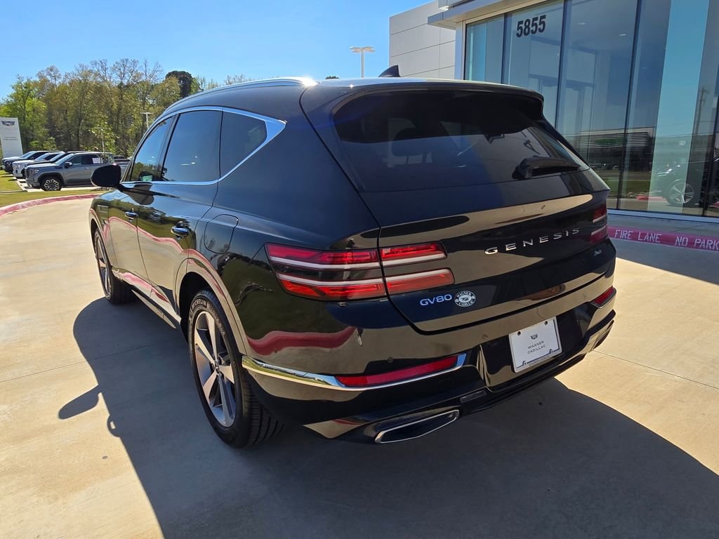 This 2021 Genesis GV80 2.5T in Vik Black comes with the following features: 2.5L DOHC 8-Speed Automatic AWD Advanced Package 02 (Blind-Spot View Monitor, Leather Seating Surfaces, Lexicon Premium Audio w/21-Speakers, Option Group 02, Rear Parking Collision-Avoidance Assist, Remote Smart Parking Assist, and Surround View Monitor), 12 Speakers, 4-Wheel Disc Brakes, 4.363 Axle Ratio, ABS brakes, Air Conditioning, Alloy wheels, AM/FM radio: SiriusXM, Android Auto & Apple CarPlay, Anti-whiplash front head restraints, Auto High-beam Headlights, Auto tilt-away steering wheel, Auto-dimming door mirrors, Auto-dimming Rear-View mirror, Auto-leveling suspension, Automatic temperature control, Brake assist, Bumpers: body-color, Compass, Delay-off headlights, Driver door bin, Driver vanity mirror, Dual front impact airbags, Dual front side impact airbags, Electronic Stability Control, Emergency communication system: Genesis Connected Services, Exterior Parking Camera Rear, Four wheel independent suspension, Front anti-roll bar, Front Bucket Seats, Front Center Armrest, Front dual zone A/C, Front reading lights, Fully automatic headlights, Garage door transmitter: HomeLink, Genuine wood console insert, Genuine wood dashboard insert, Genuine wood door panel insert, Heated & Ventilated Front Bucket Seats, Heated door mirrors, Heated front seats, Heated steering wheel, Illuminated entry, Knee airbag, Leather steering wheel, Leatherette Seating Surfaces, Low tire pressure warning, Memory seat, Navigation System, Occupant sensing airbag, Outside temperature display, Overhead airbag, Overhead console, Panic alarm, Passenger door bin, Passenger vanity mirror, Power door mirrors, Power driver seat, Power Liftgate, Power moonroof, Power passenger seat, Power steering, Power windows, Radio data system, Radio: AM/FM/SiriusXM/HD Premium Audio System, Rain sensing wipers, Rear air conditioning, Rear anti-roll bar, Rear reading lights, Rear seat center armrest, Rear side impact airbag, Rear window defroster, Rear window wiper, Remote keyless entry, Security system, Speed control, Speed-sensing steering, Speed-Sensitive Wipers, Split folding rear seat, Spoiler, Steering wheel memory, Steering wheel mounted audio controls, Tachometer, Telescoping steering wheel, Tilt steering wheel, Traction control, Trip computer, Turn signal indicator mirrors, Variably intermittent wipers, Ventilated front seats, Wheels: 19 x 8.5J Alloy, and Wheels: 20 x 8.5J Alloy.