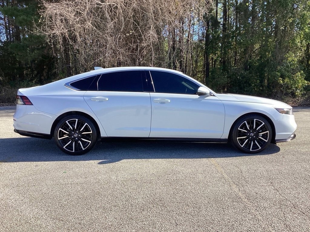 Recent Arrival! This 2025 Honda Accord Hybrid Touring in Platinum White Pearl comes with the following features: 2.0L I4 DOHC 16V eCVT FWD 2.0L I4 DOHC 16V 2.0L I4 DOHC 16V, 12 Speakers, 4-Wheel Disc Brakes, ABS brakes, Adaptive Cruise Control: Adaptive Cruise Control (ACC) with Low-Speed Follow, Air Conditioning, Alloy wheels, AM/FM radio, Apple CarPlay/Android Auto, Auto High-beam Headlights, Auto-dimming Rear-View mirror, Automatic temperature control, Blind Spot Information (BSI) System warning, Bose Premium Sound System, Brake assist, Bumpers: body-color, Compass, Delay-off headlights, Driver door bin, Driver vanity mirror, Dual front impact airbags, Dual front side impact airbags, Electronic Stability Control, Emergency communication system: HondaLink, Exterior Parking Camera Rear, Four wheel independent suspension, Front anti-roll bar, Front Bucket Seats, Front Center Armrest, Front dual zone A/C, Front reading lights, Fully automatic headlights, Heads-Up Display, Heated & Ventilated Front Bucket Seats, Heated door mirrors, Heated front seats, Heated rear seats, Heated steering wheel, Illuminated entry, Knee airbag, Lane departure: Lane Keeping Assist System (LKAS) active, Leather Shift Knob, Leather steering wheel, Leather-Trimmed Seat Trim, Low tire pressure warning, Memory seat, Navigation System, Occupant sensing airbag, Outside temperature display, Overhead airbag, Overhead console, Panic alarm, Passenger door bin, Passenger vanity mirror, Power door mirrors, Power driver seat, Power moonroof, Power passenger seat, Power steering, Power windows, Radio data system, Rain sensing wipers, Rear anti-roll bar, Rear reading lights, Rear seat center armrest, Rear side impact airbag, Rear window defroster, Remote keyless entry, Security system, Speed control, Speed-sensing steering, Speed-Sensitive Wipers, Split folding rear seat, Steering wheel mounted audio controls, Telescoping steering wheel, Tilt steering wheel, Traction control, Trip computer, Turn signal indicator mirrors, Variably intermittent wipers, Ventilated front seats, and Wheels: 19" x 8.5J Berlina Black.